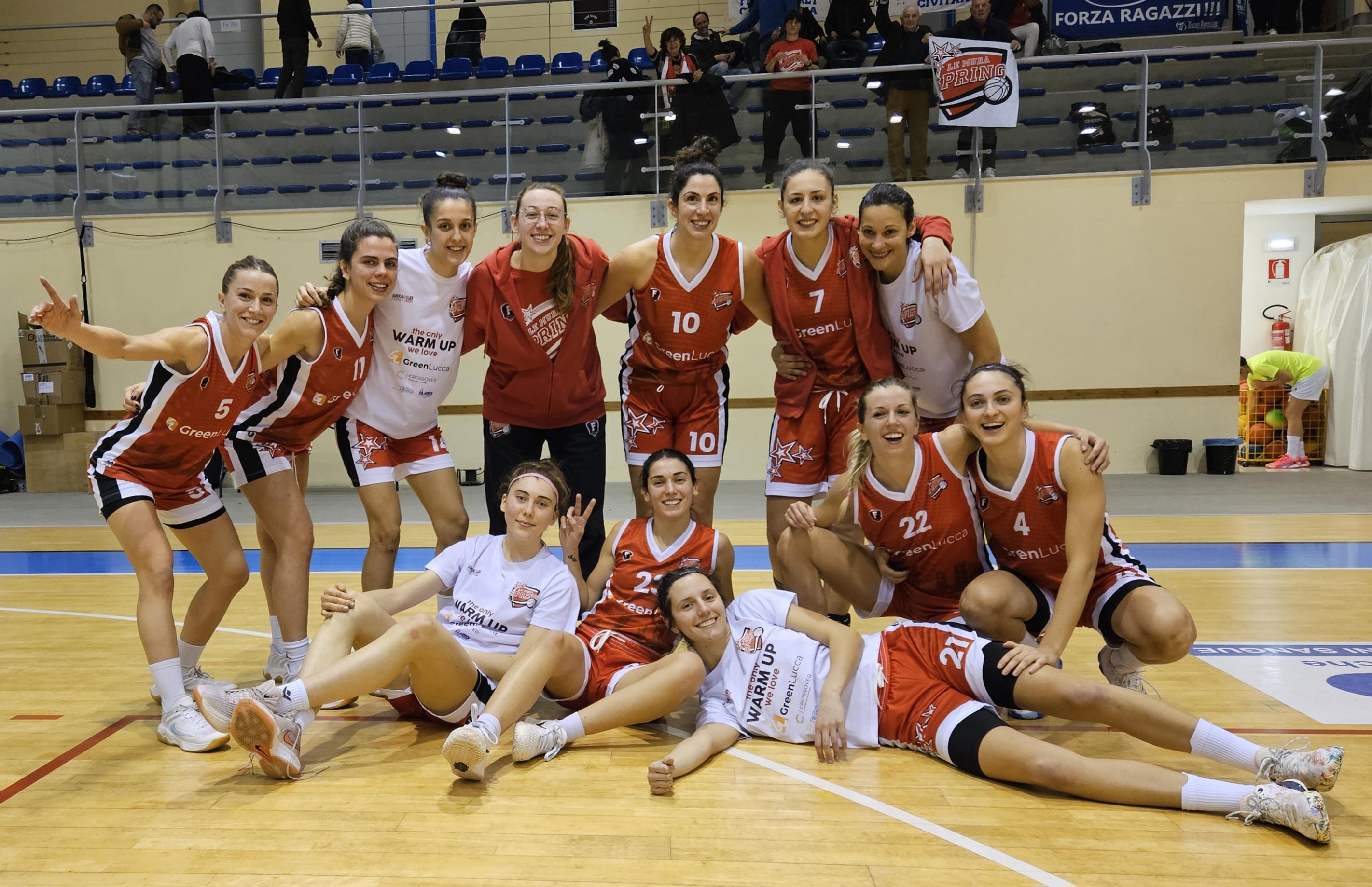 Vittoria per le ragazze del Greenlucca a Civitanova Marche dopo un tempo supplementare con una prestazione di carattere. Dopo aver sofferto la zona delle marchigiane per tutto il secondo tempo, si scatenano all'inizio dell'overtime senza farsi più recuperare.