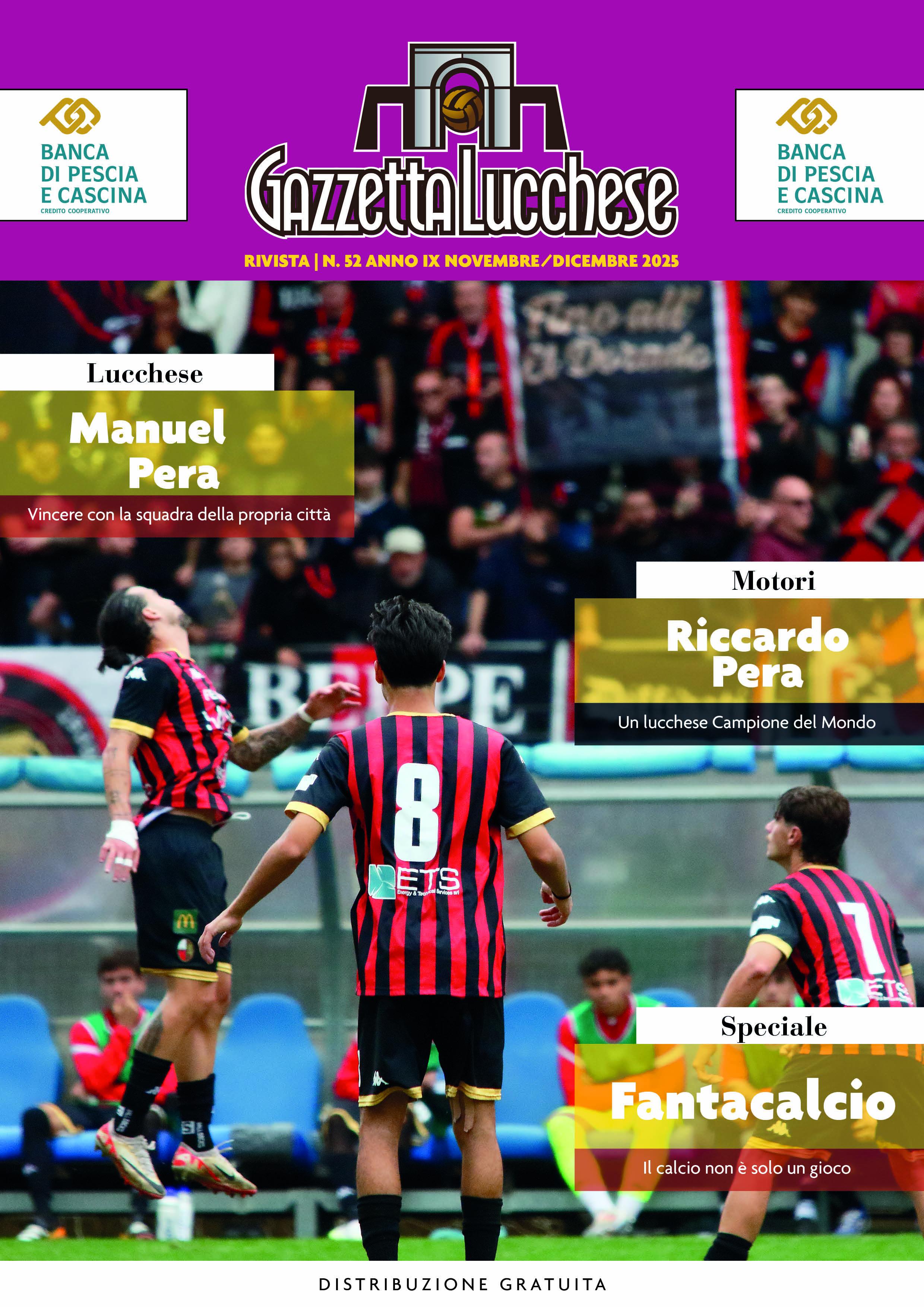 E' in distribuzione il cinquantaduesimo numero del periodico di Gazzetta Lucchese. Nella rivista appena stampata, che ospita una lunga intervista esclusiva con l'ex rossonero Manuel Pera che ripercorre le sue stagioni nella Lucchese. Spazio anche a un lungo servizio su un altro Pera, ovvero Riccardo, il campione del mondo di automobilismo lucchese. E, ancora, un dettagliato servizio sul Fantacalcio come propagazione moderna dello sport, oltre al Romanzo rossonero con i tabellini delle gare dei rossoneri.