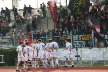5' | pt | Oltre 500 i tifosi rossoneri presenti, tra di loro anche una rappresentanza dei tifosi del Montecatini Basket |