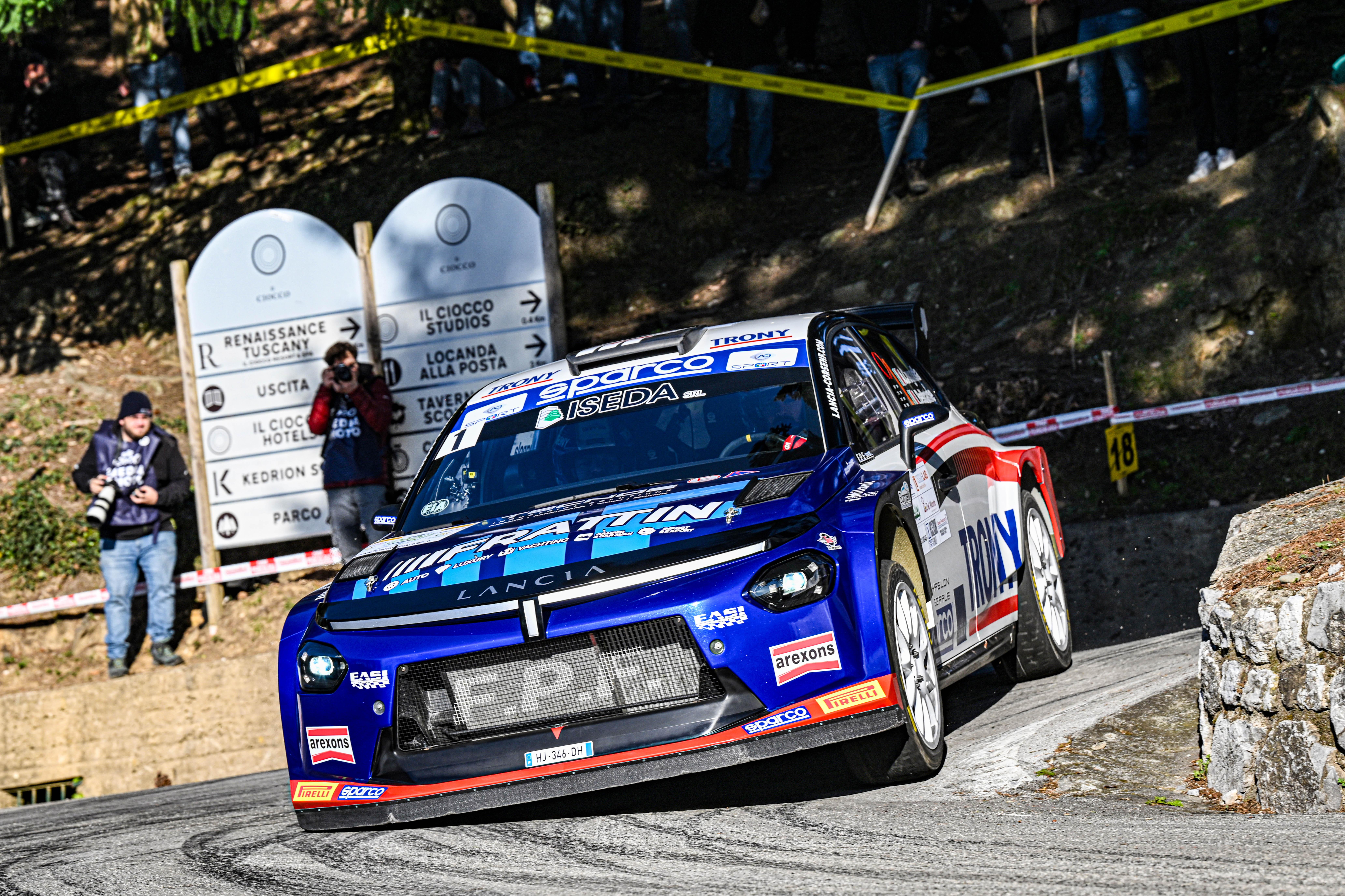 Lucca città dei motori. Da sempre. Ancora di più in questo 2026 in cui ha accolto nel "salotto" elegante del Caffè delle Mura, con il contorno delle splendide mura medioevali, la partenza del 49° Rally Il Ciocco e Valle del Serchio e l'arrivo della gara valevole per la Coppa Rally di Zona, in attesa a novembre della Finale di Coppa Italia Rally. Gremita di folla, un grande abbraccio caloroso tutta l'area della partenza, con la presenza prestigiosa del Presidente di Automobile Club d'Italia Avv. Geronimo La Russa sul palco per il ricordo sentito, con la partecipazione della moglie Flavia, del grande campione Sandro Munari, recentemente scomparso, testimoniato anche da un adesivo su tutte le vetture in gara, con la CEO Lancia Roberta Zerbi, insieme al due volte campione del modo rally Miki Biasion, a salutare il rientro nella serie tricolore dell'importante marchio con la Ypsilon HF Integrale Rally2 di Crugnola-Beltrame e la pattuglia numerosa dei trofeisti: uno start di spessore ed una vetrina importante per il Campionato Italiano Assoluto Rally Sparco, la massima espressione del rallismo nazionale.
