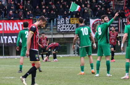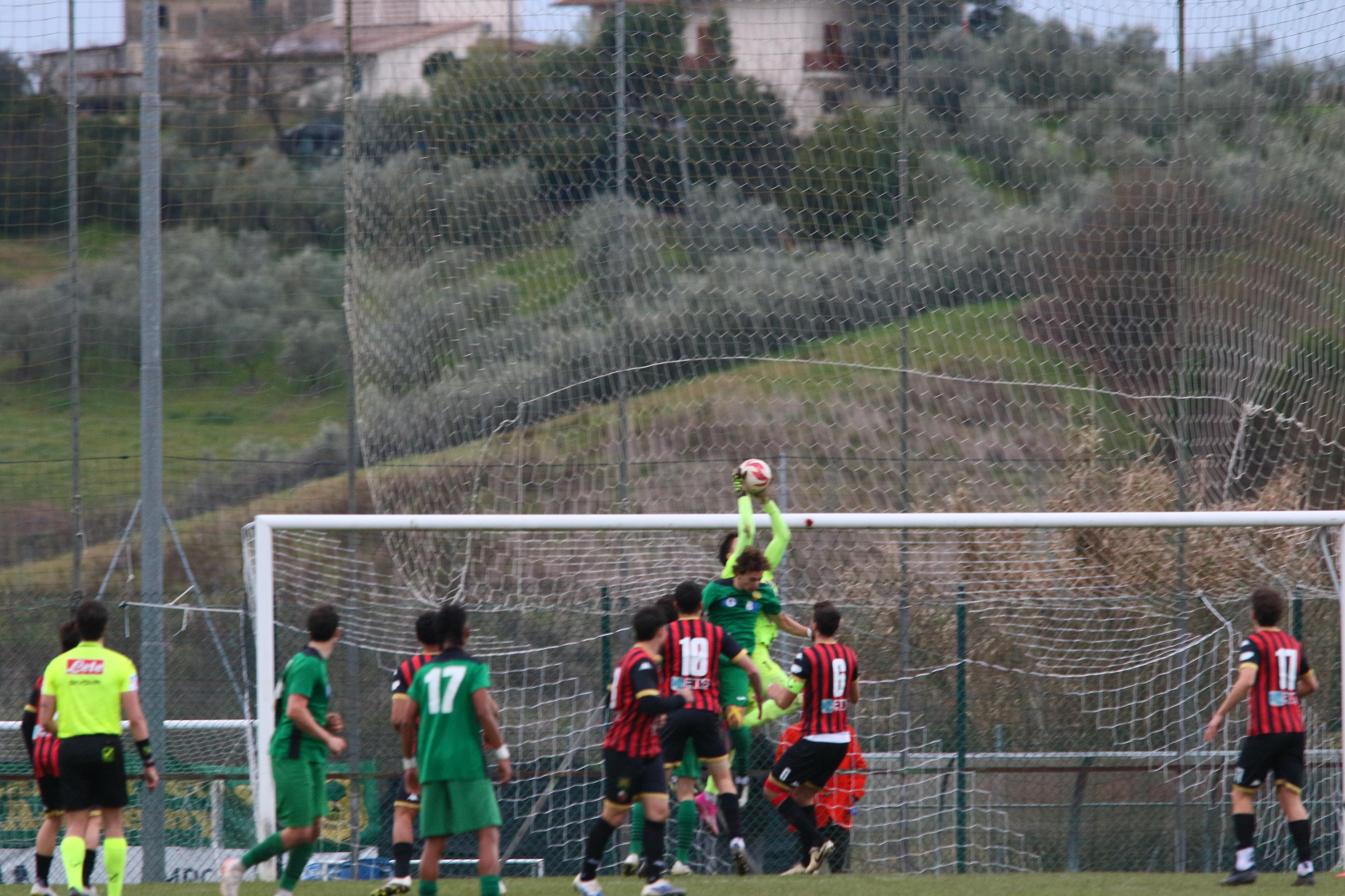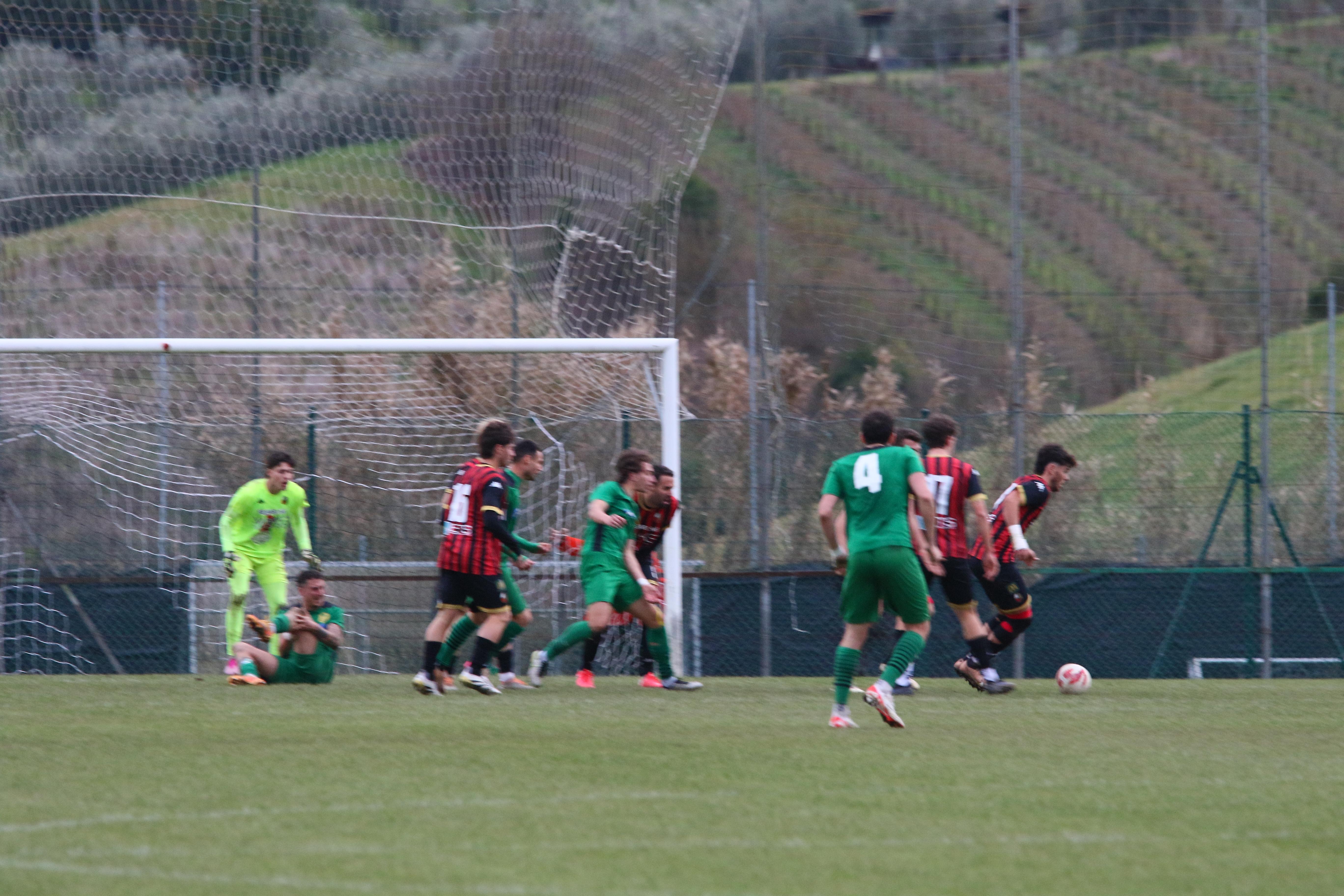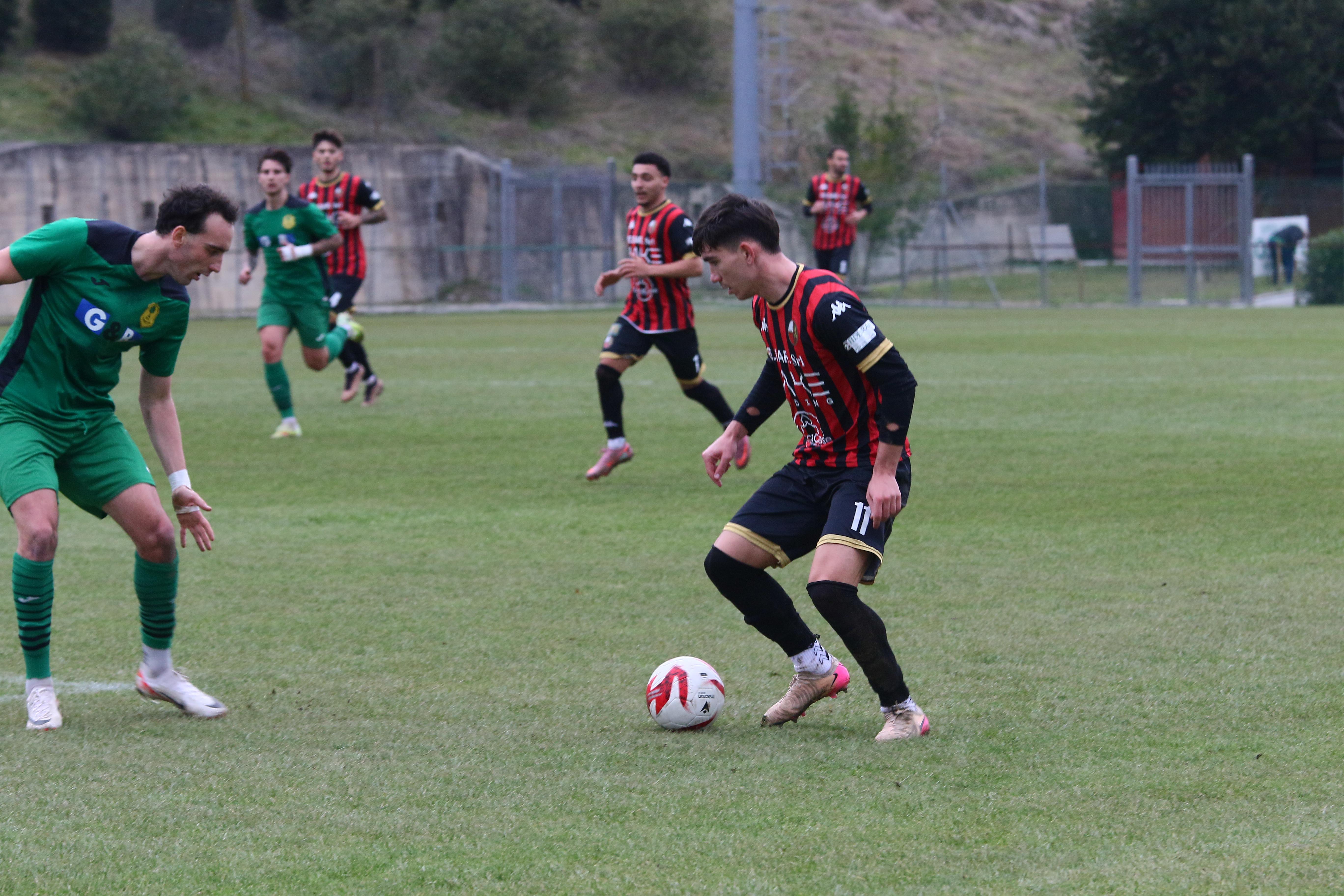 La ripresa comincia con i padroni di casa subito in avanti, la gara è apertissima. Bouhafa ci prova da dentro l'area al 13', ma la palla si perde sul fondo. A metà ripresa i primi cambi: dentro Caggianese Sansaro, fuori Colferai e Palma. Santeramo non trova l'impatto giusto di testa sugli sviluppi di un angolo. La porta la trova invece Orsucci con un tirocross che inganna Milan: è il 28'. Al 31' la palla buona per ritornare in vantaggio è sulla testa di Riad che conclude fuori di poco. Poi è la volta di Caggianese su punizione, ma la palla finisce tra le braccia di Battini. Passano i minuti, i rossoneri perdono lucidità e rischiano anche sulle ripartenze dei padroni di casa. A completare le difficoltà, a una manciata di minuti dal termine arriva anche l'espulsione di Del Rosso. Finisce qui: e il 2026 inizia come era finito il 2025: con un pari che lascia comunque i rossoneri in testa.