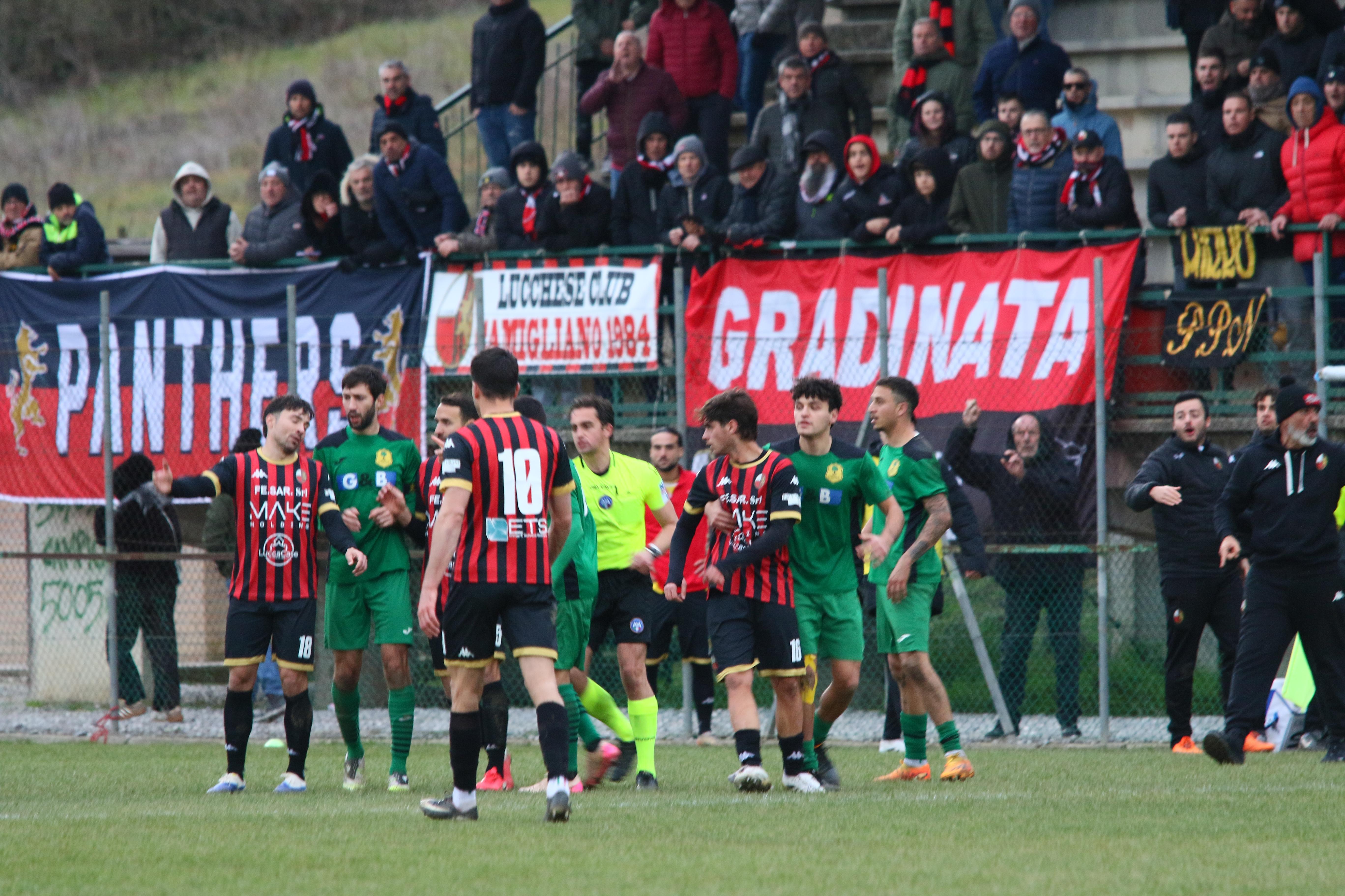 La Lucchese si aggiudica lo scontro diretto con il Viareggio grazie a una rete realizzata da Fedato nella ripresa. Dopo un primo tempo equilibrato con occasioni da entrambe le parti, i rossoneri salgono in cattedra, sbloccano il risultato e vanno più volte vicini al raddoppio. Ospiti vicini al pari nel recupero.