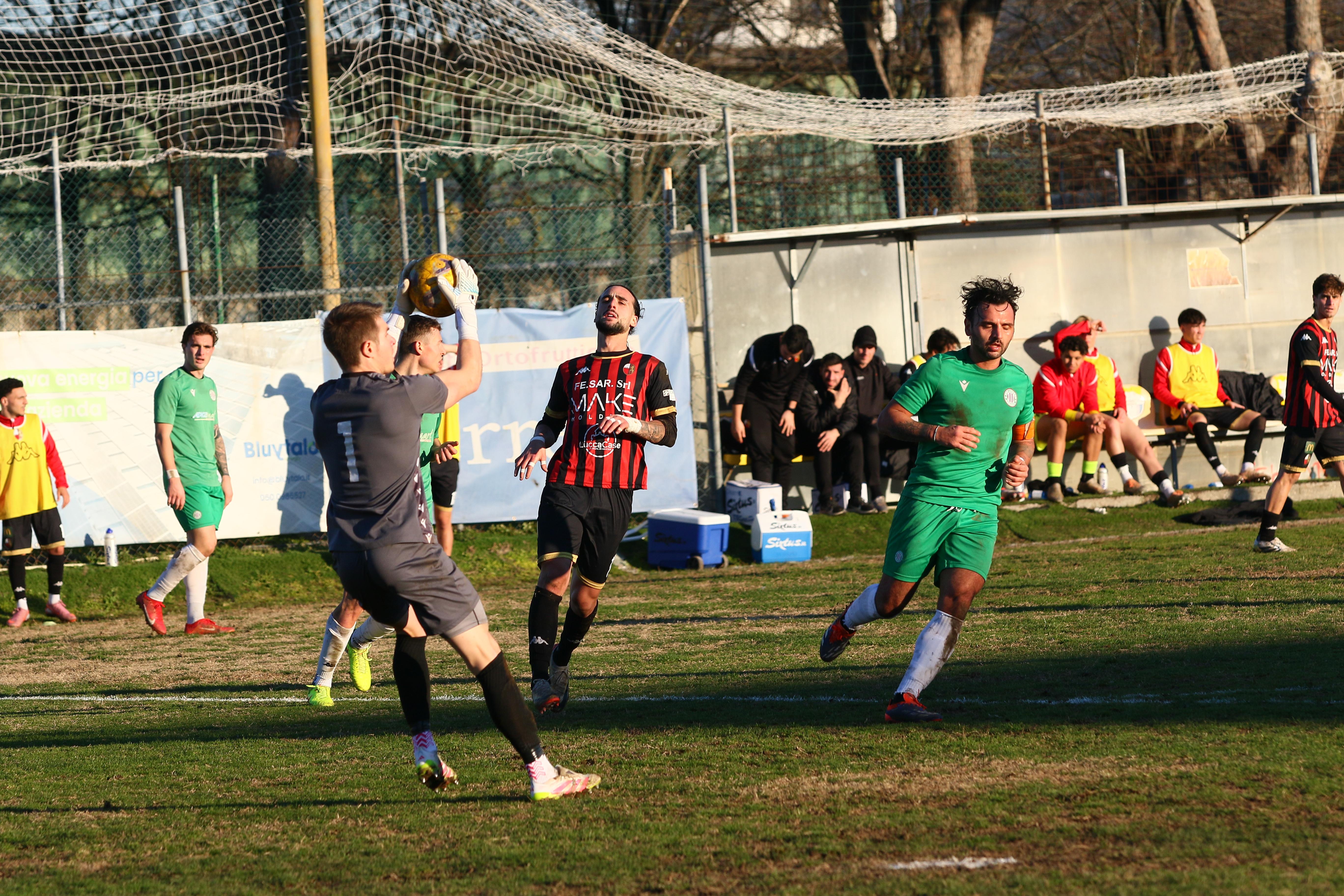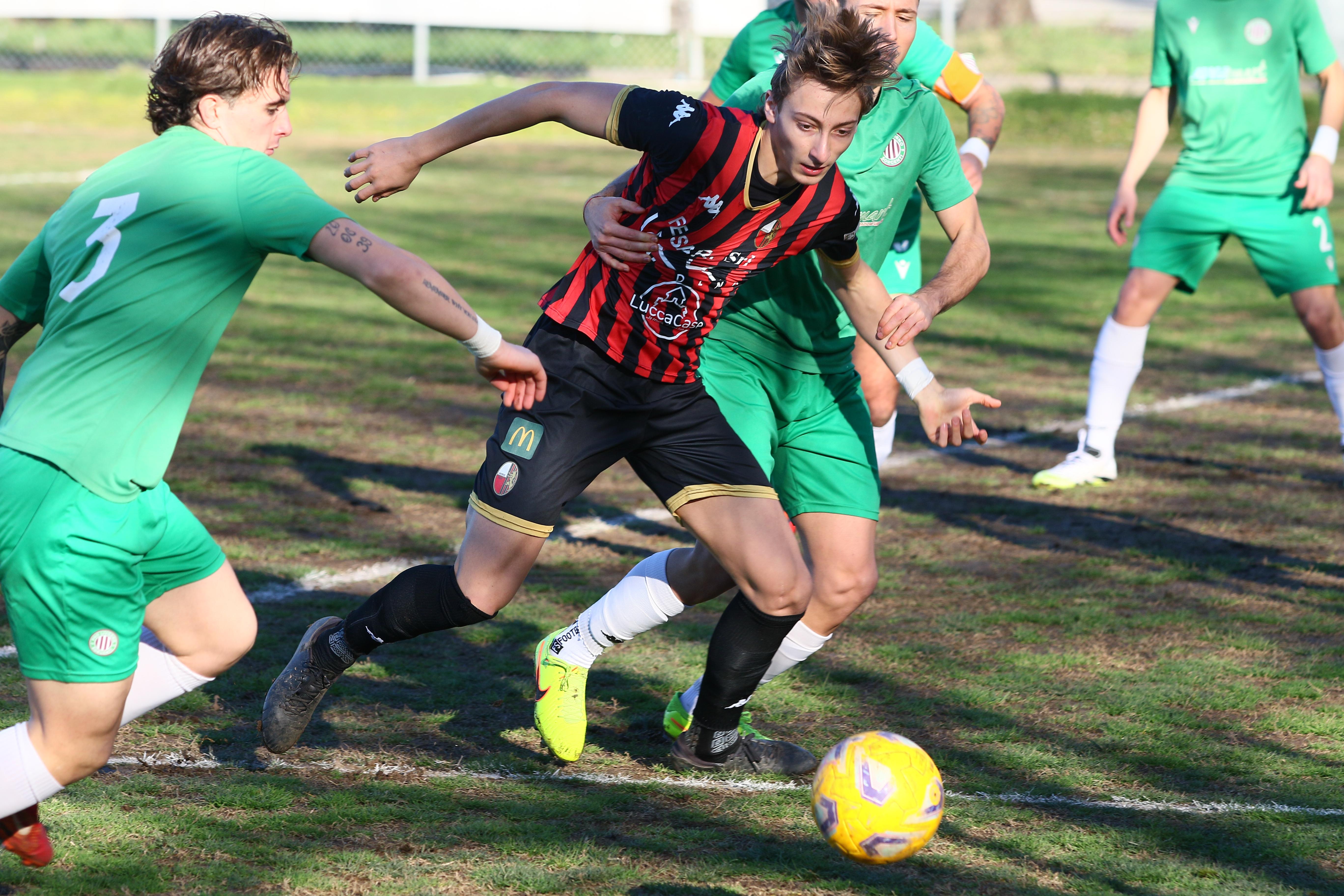 La Lucchese si aggiudica lo scontro diretto con il Viareggio grazie a una rete realizzata da Fedato nella ripresa. Dopo un primo tempo equilibrato con occasioni da entrambe le parti, i rossoneri salgono in cattedra, sbloccano il risultato e vanno più volte vicini al raddoppio. Ospiti vicini al pari nel recupero.