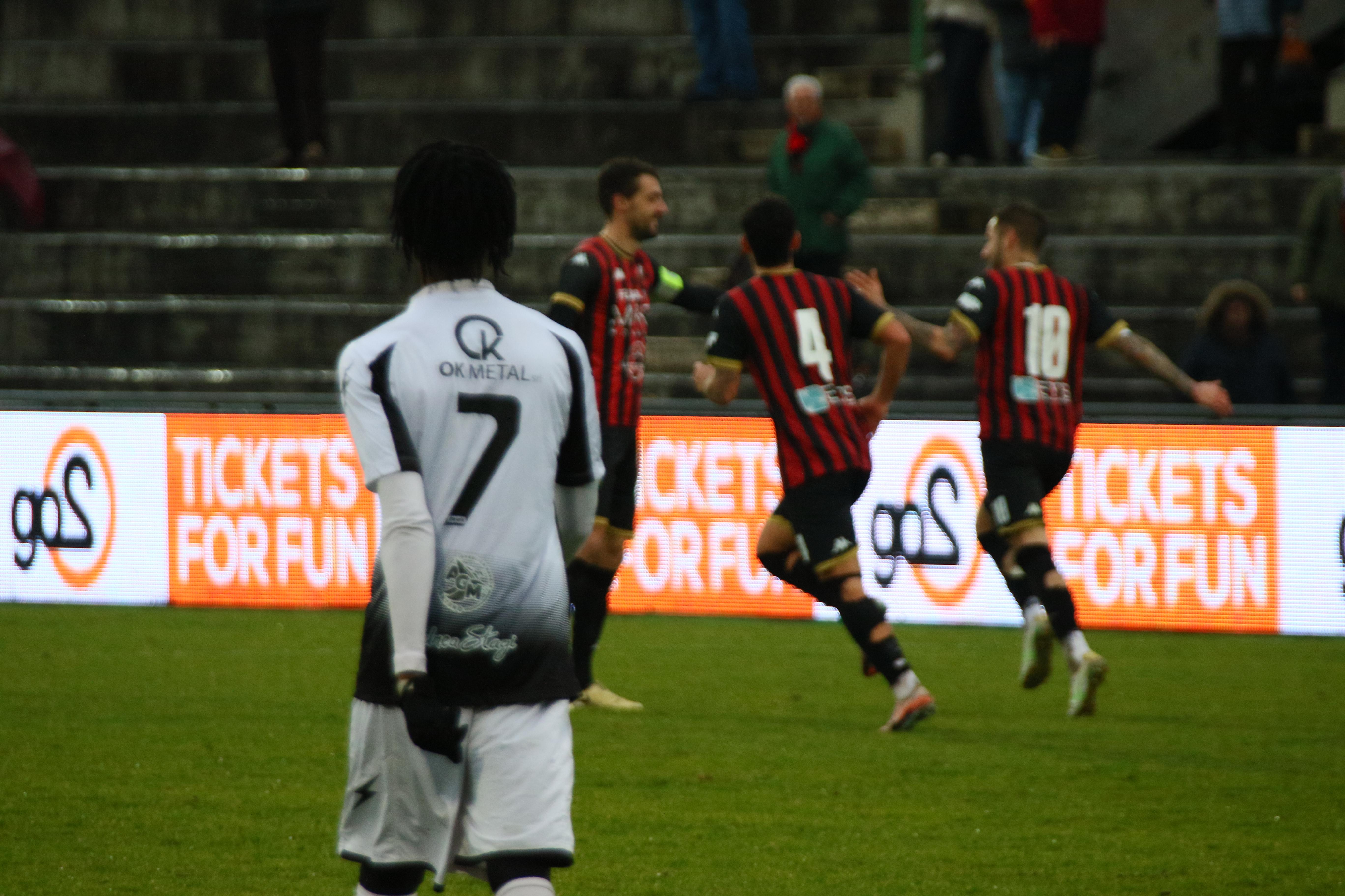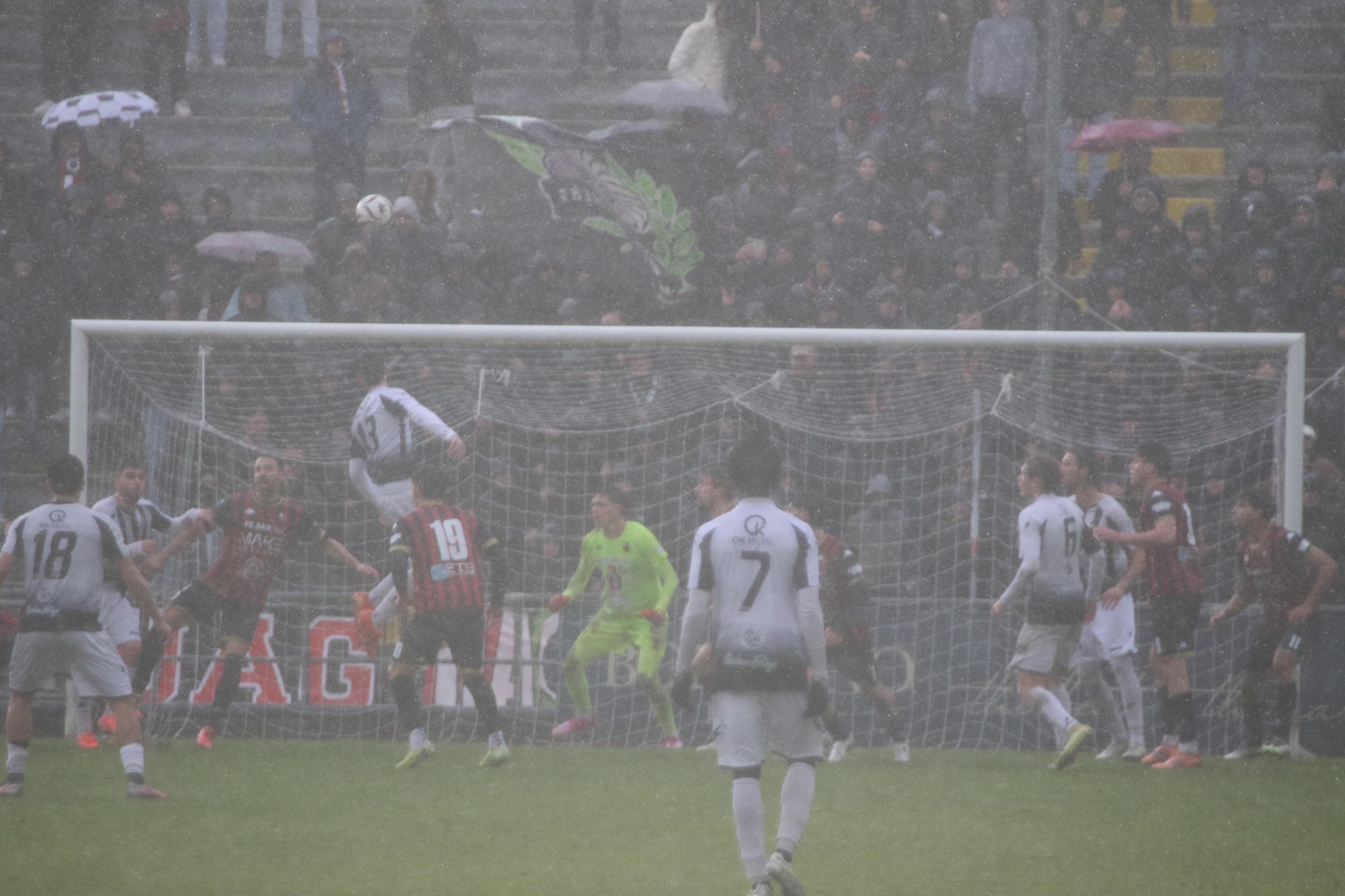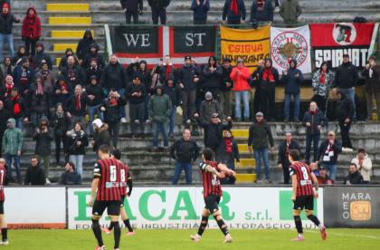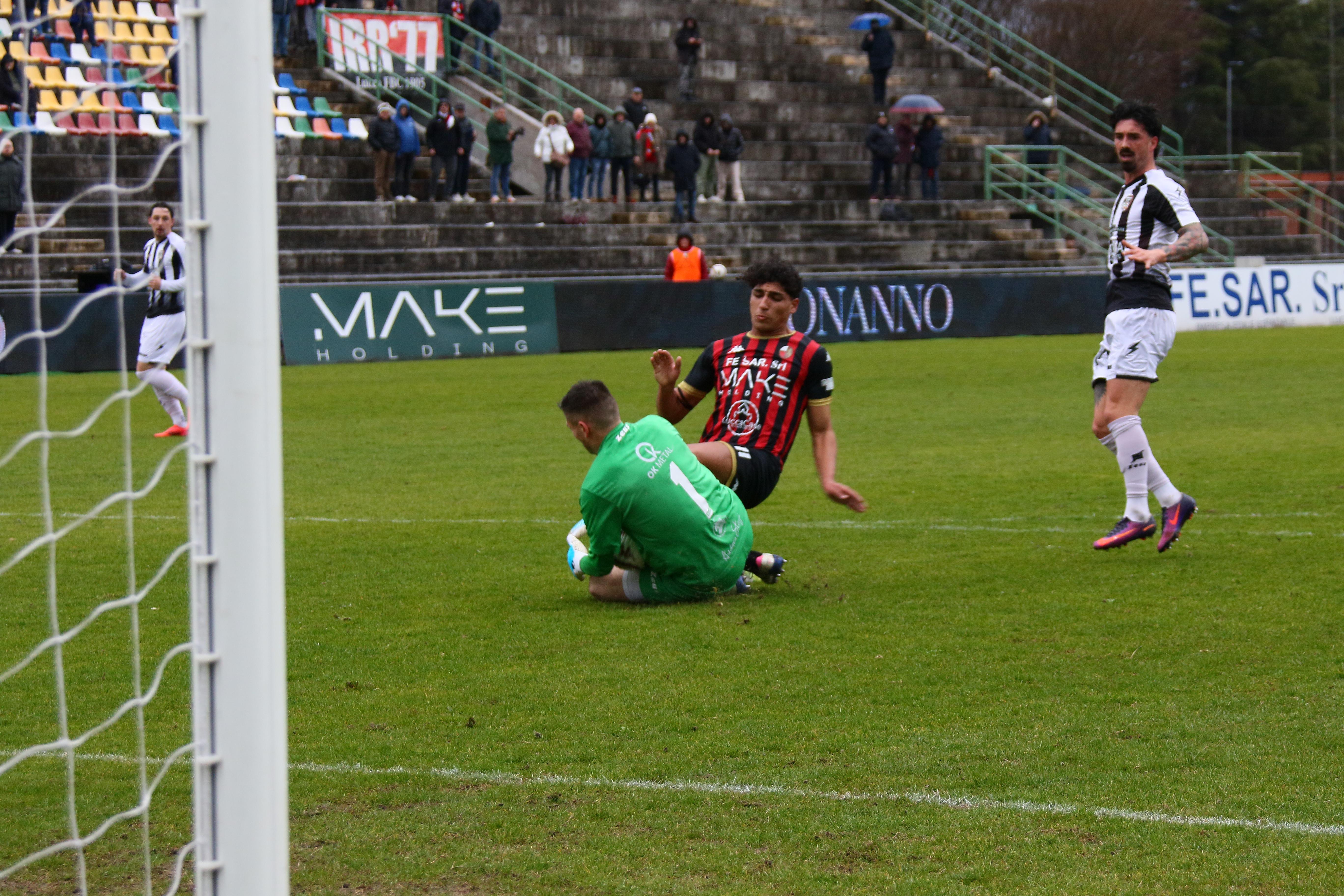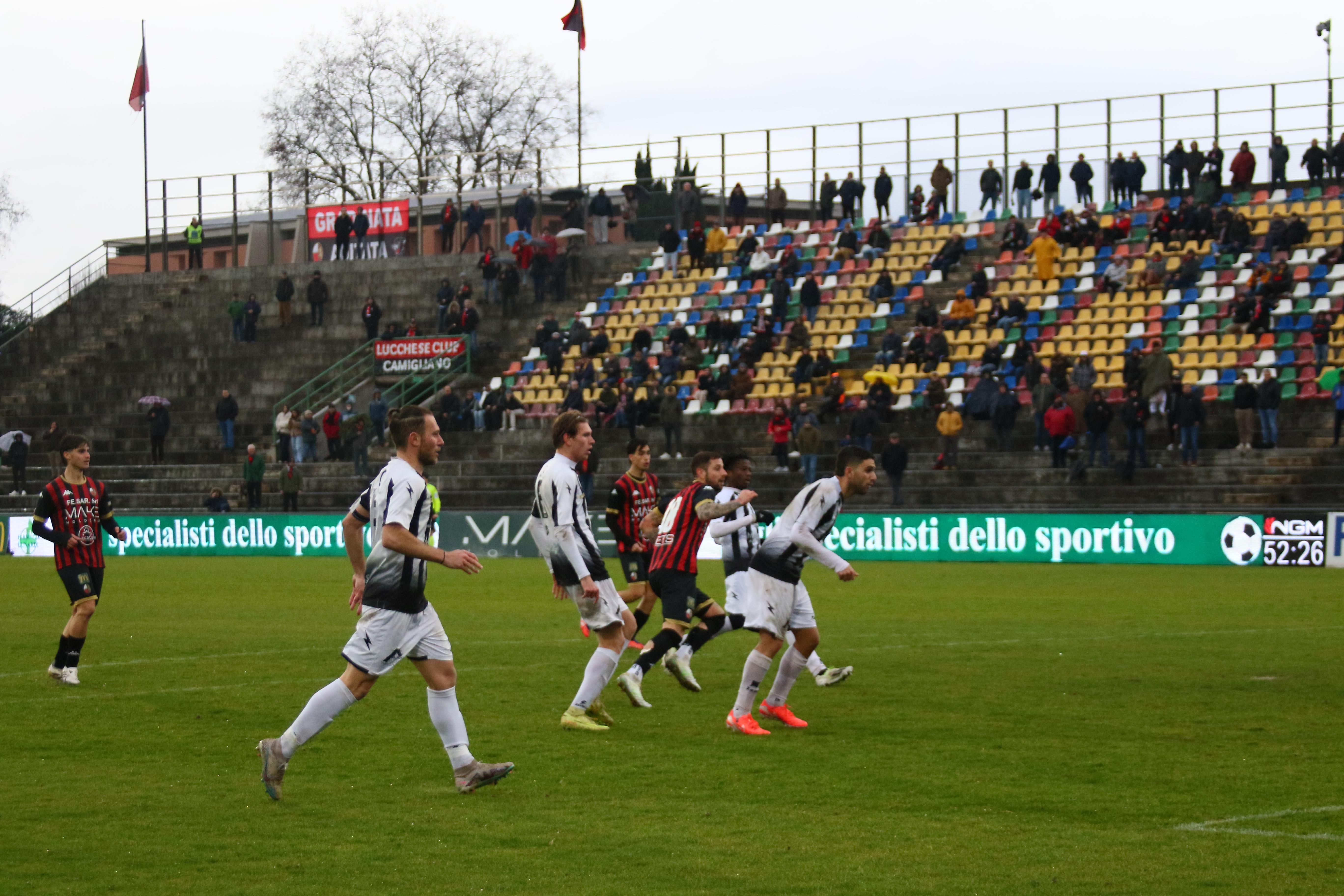 Ma i bianconeri stringono di assedio la Lucchese: una mischia furiosa prima e poi una parata di Milan su Galligani quando siamo al 42'. E' un parapiglia in campo con Galligani che vergognosamente non restituisce un pallone con l'inganno provando a beffare la difesa rossonera. Le lancette scorrono, l'arbitro concede addirittura nove minuti di recupero. Al terzo dei quali Pegollo centra una traversa in sospetto fuorigioco. E' un assedio in un clima rovente. Ma gli sforzi degli ospiti si infrangono sulla ferocia difensiva dei rossoneri. E' una vittoria pesantissima. Che regala il primo posto in solitudine.