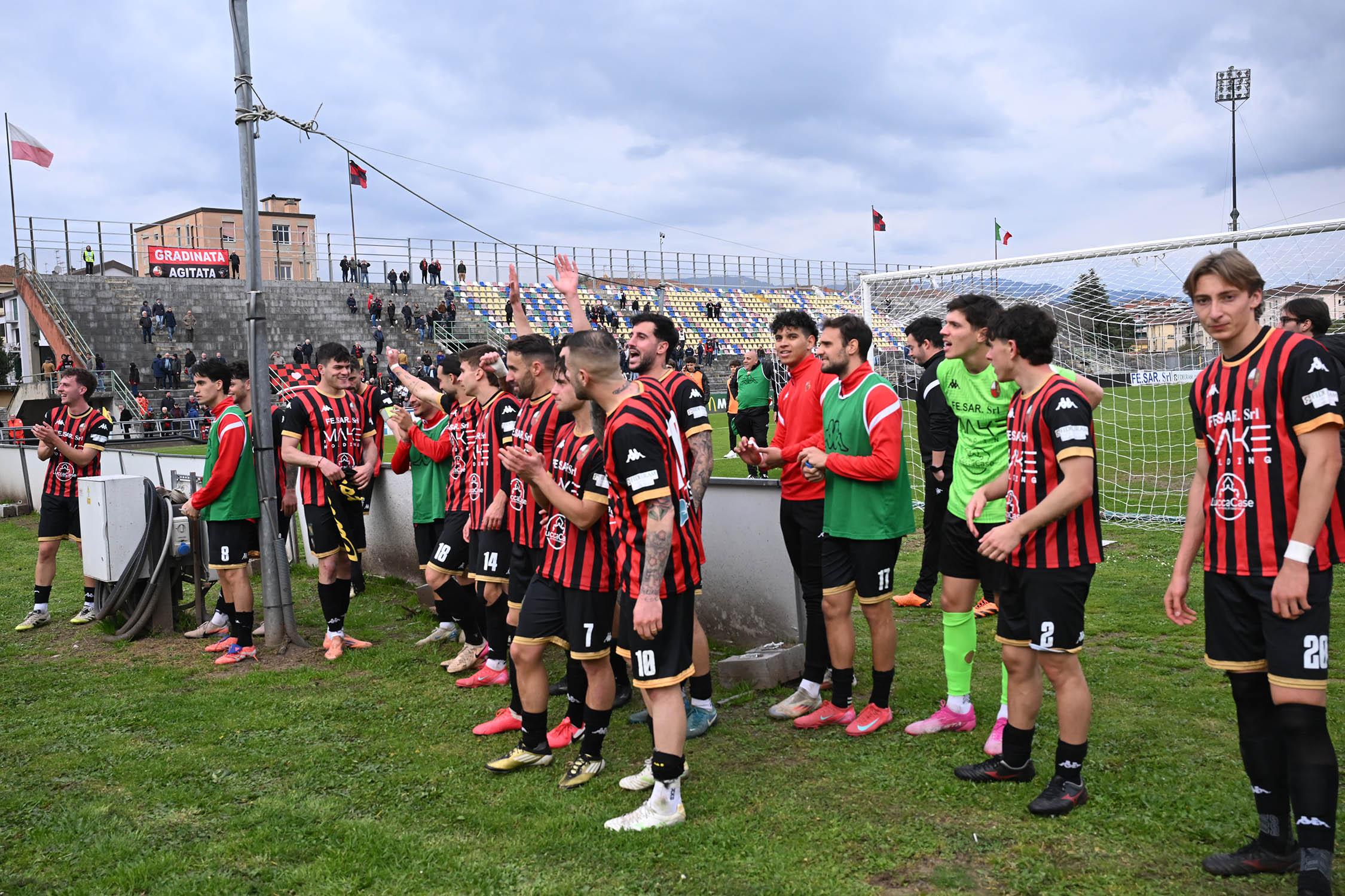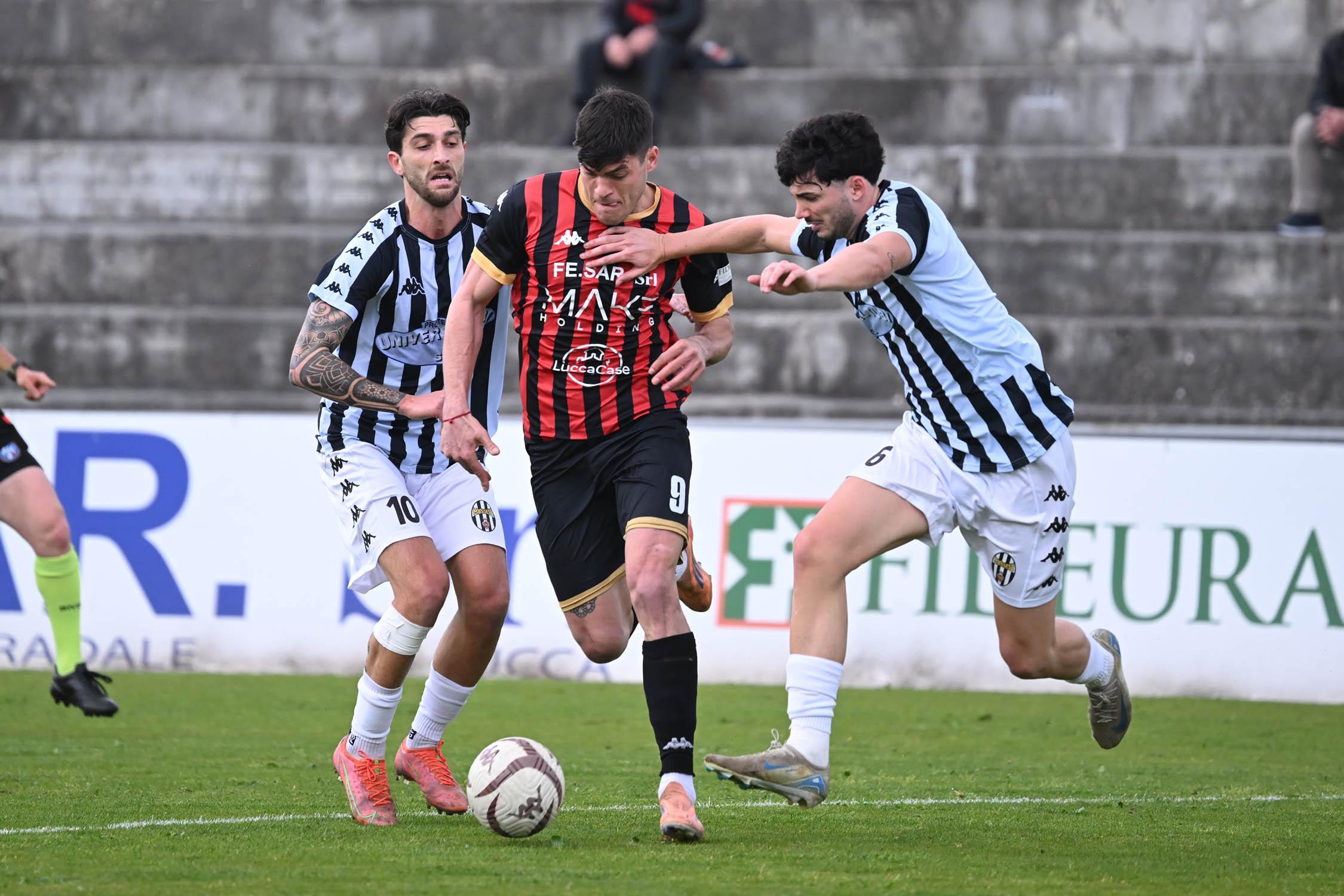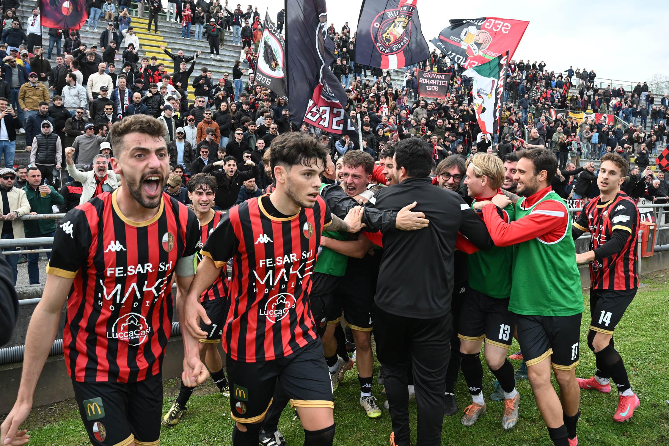 Tre punti per guardare alla Serie D, ora davvero da vicino. La Lucchese vince il derby contro una coriacea Massese che molla solo a pochi secondi dalla fine grazie a un colpo di testa di Sansaro che era entrato poco prima nel forcing disperato degli uomini di Pirozzi che cercavano a tutti i costi la vittoria. Ora, a sei giornate dalla fine, la promozione si fa più vicina.