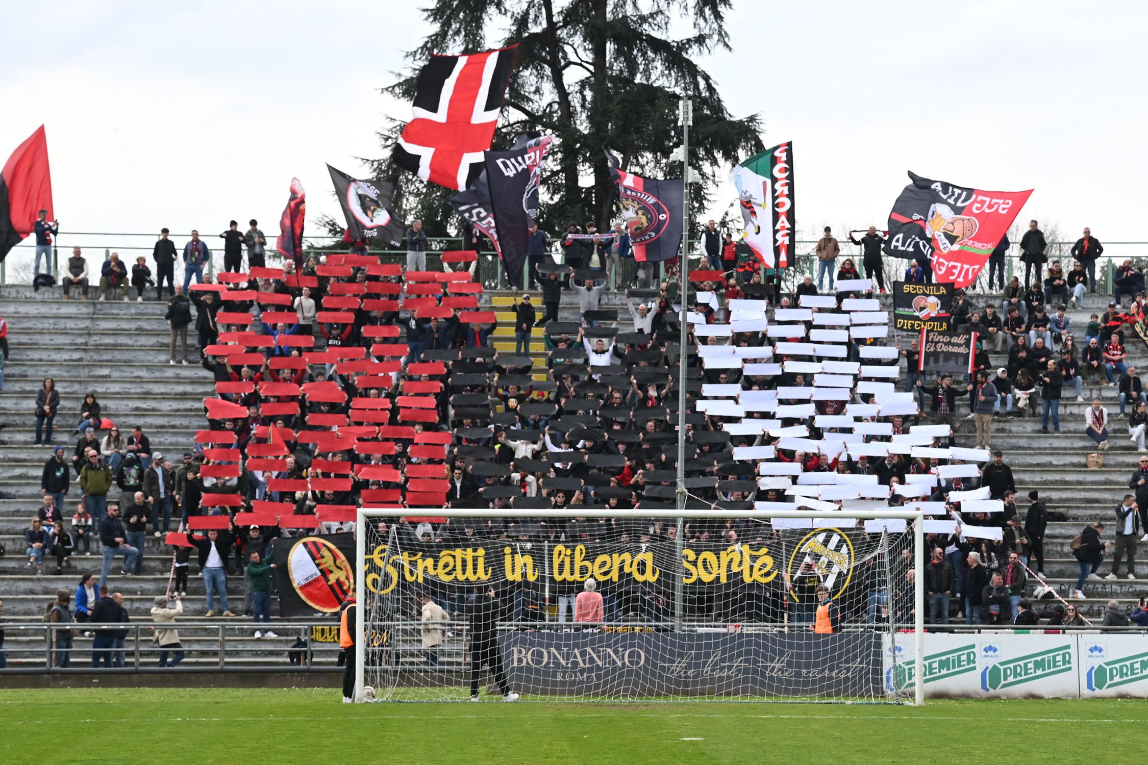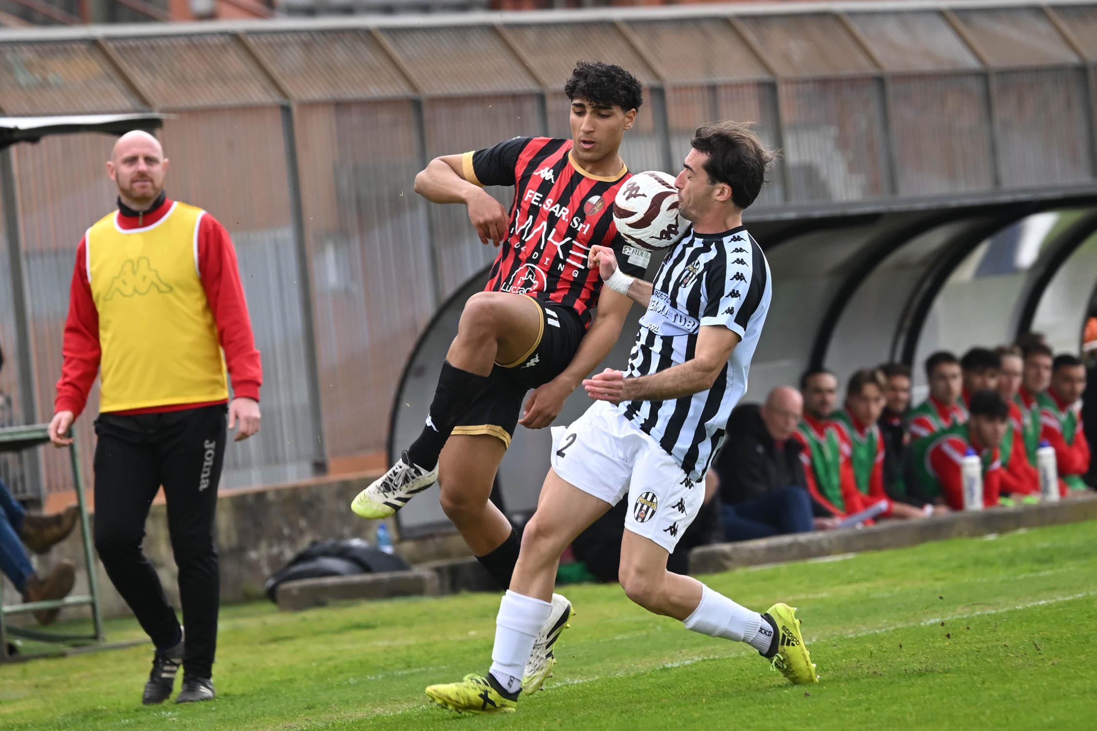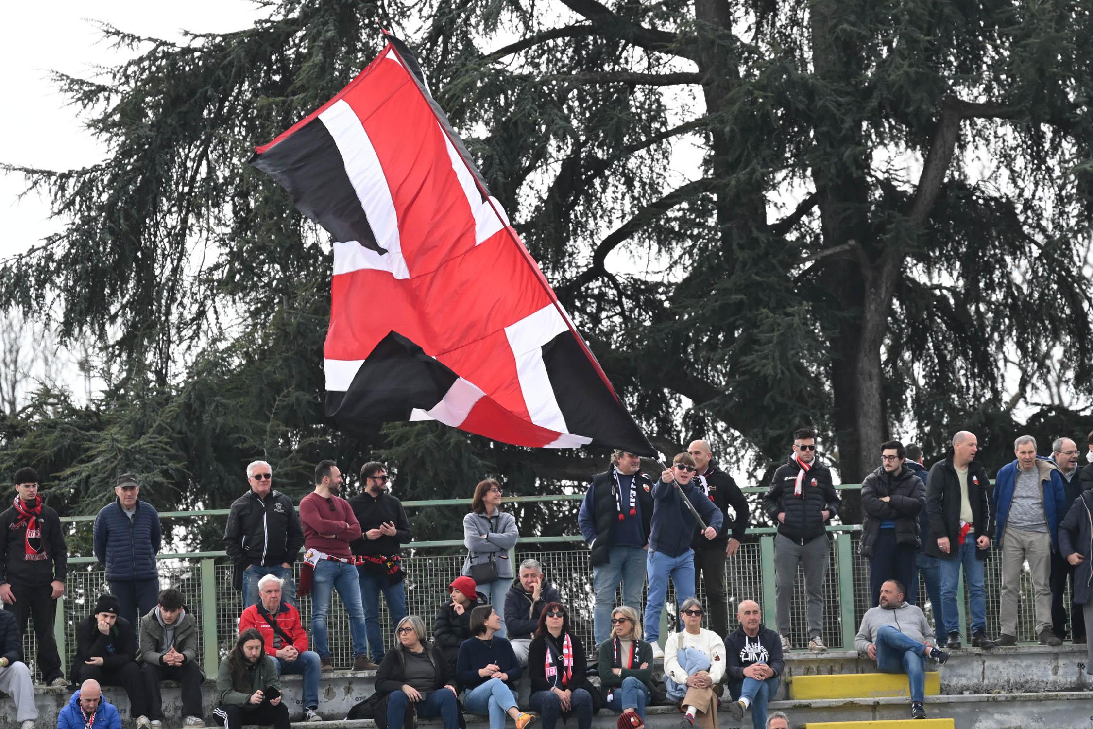 Stadio Porta Elisa più pieno del solito con buona presenza di tifosi ospiti, accolti da quelli di casa con una coreografia rossonera e bianconera in omaggio allo storico gemellaggio, Mister Pirozzi ritrova Riad sul fronte offensivo, un'assenza che si è avvertita eccome, mentre in difesa scommette su Lorenzini, preferito a Tosi.