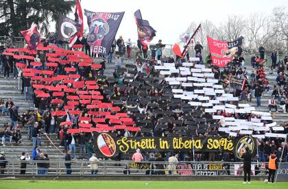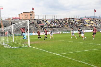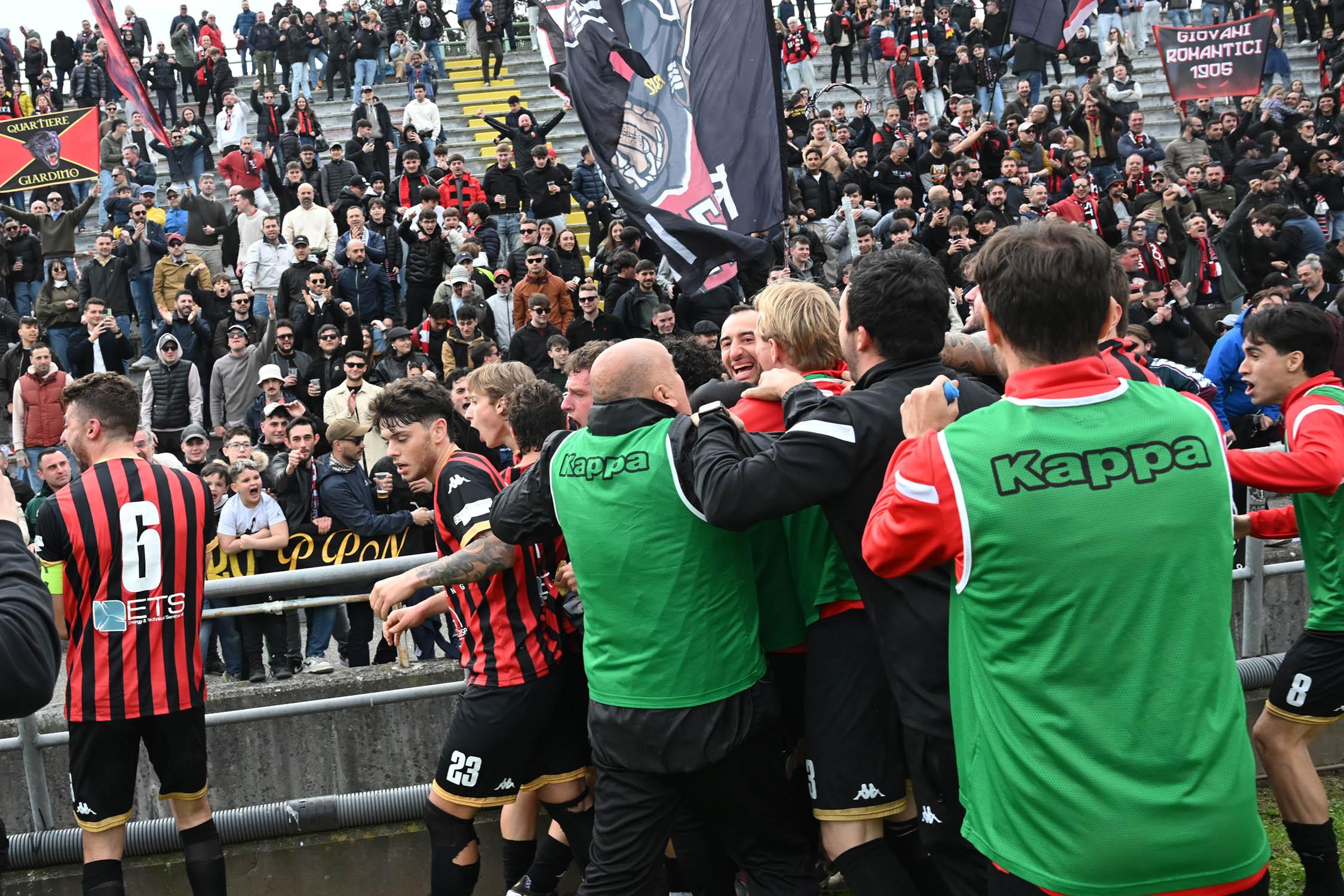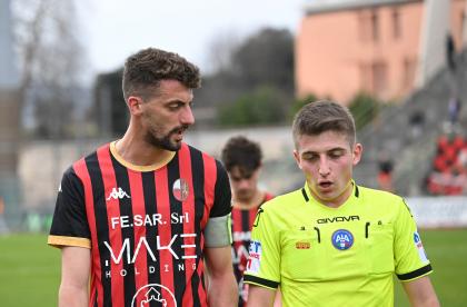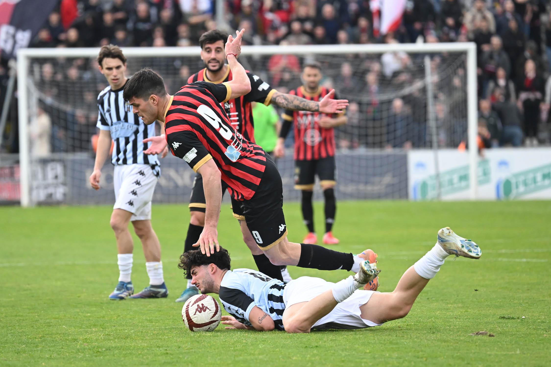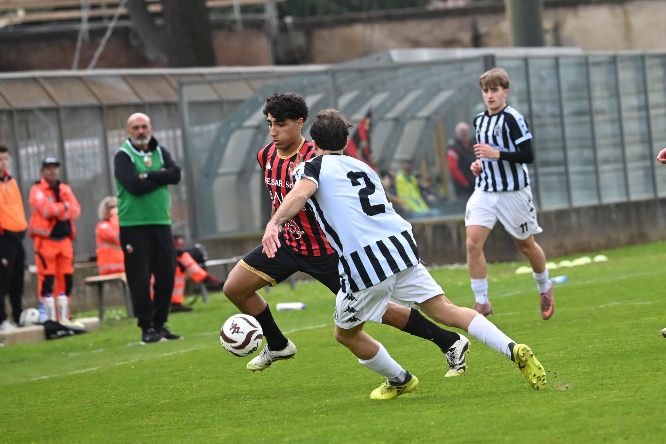 Stadio Porta Elisa più pieno del solito con buona presenza di tifosi ospiti, accolti da quelli di casa con una coreografia rossonera e bianconera in omaggio allo storico gemellaggio, Mister Pirozzi ritrova Riad sul fronte offensivo, un'assenza che si è avvertita eccome, mentre in difesa scommette su Lorenzini, preferito a Tosi.