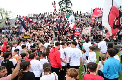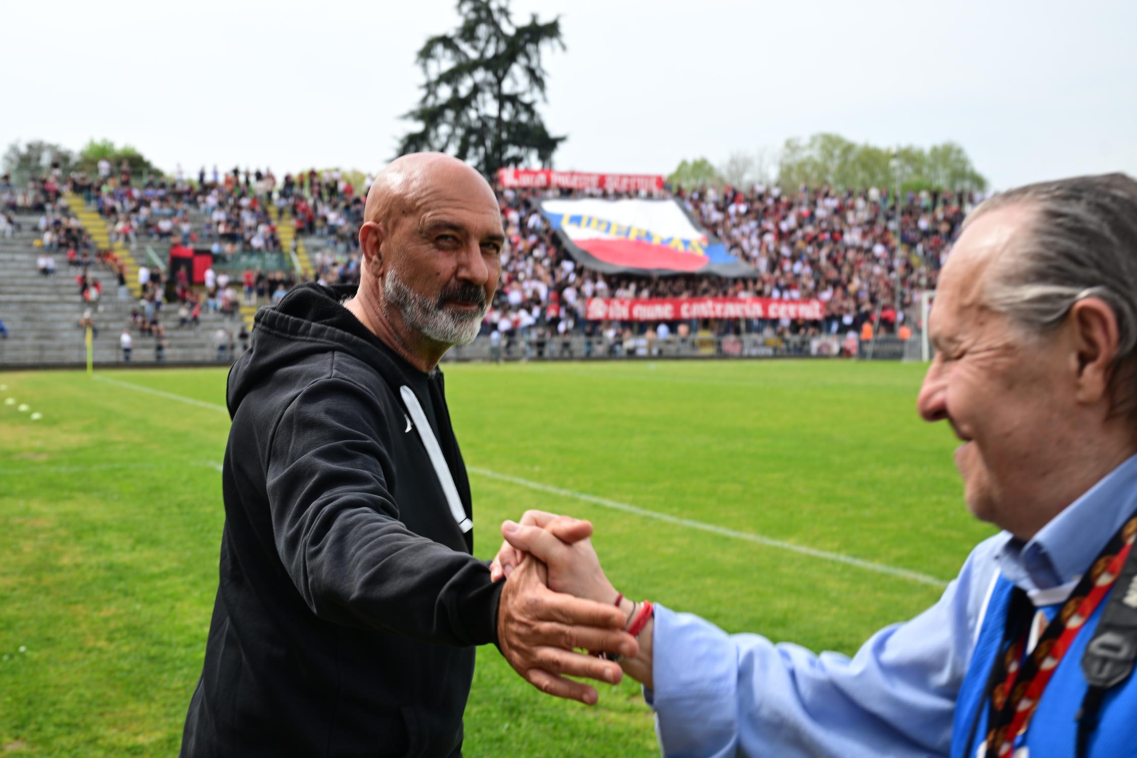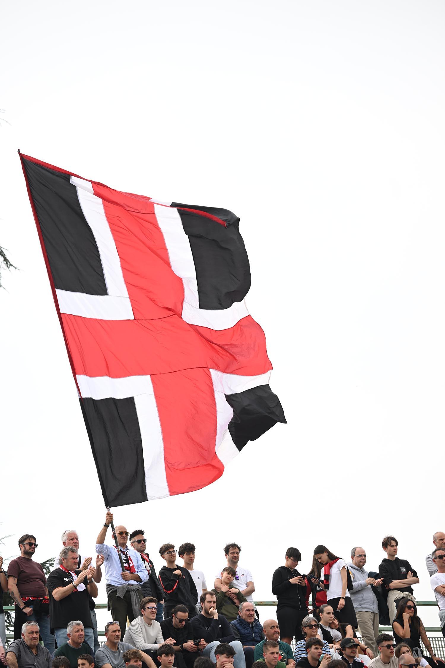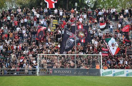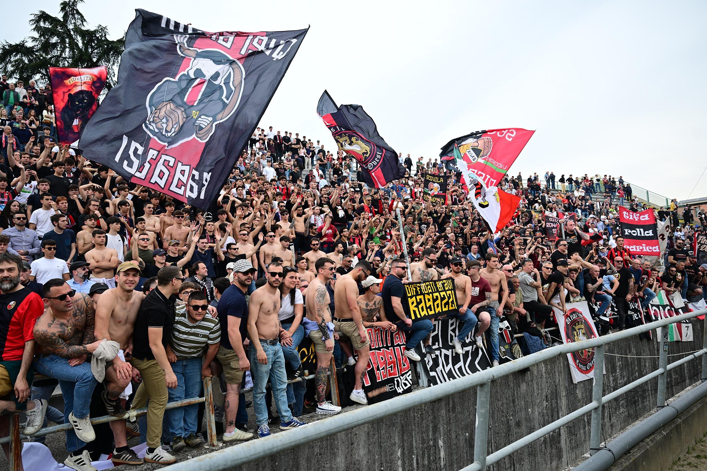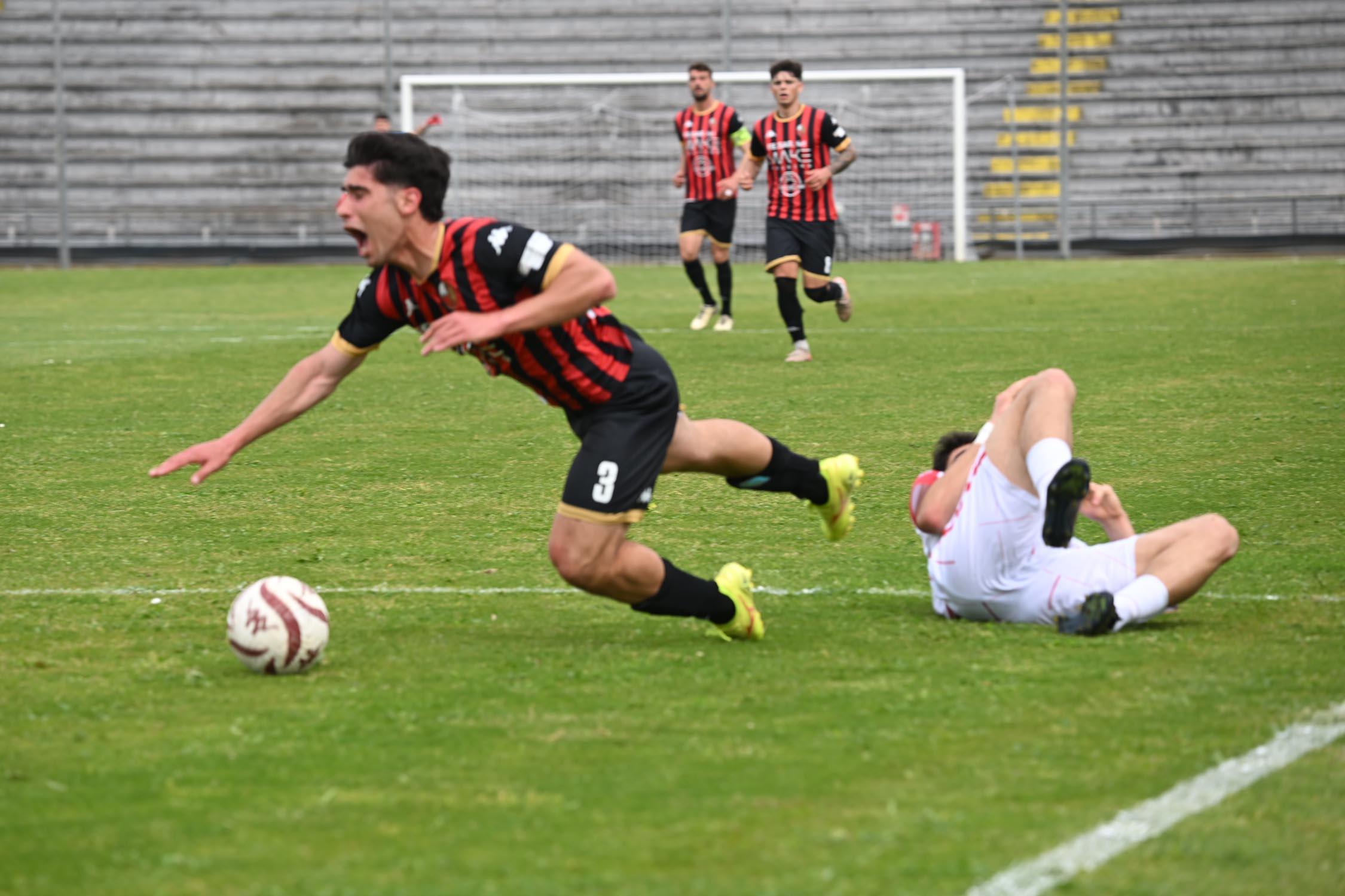 Mister Pirozzi dà fiducia a coloro che ha maggiormente impiegato, a partire dai due esterni di difesa Xeka e Lorenzini, a centrocampo Del Rosso è preferito a Russo, mentre in attacco con Riad ancora non al meglio la maglia da titolare resta sulle spalle di Piazze. In un catino carico di entusiasmo e di 3500 persone, numeri impressionanti per il contesto, i rossoneri partono bene e vanno in gol con Piazze al 2': per il guardalinee è in fuorigioco. Dubbio. Ma i rossoneri insistono e mettono subito alle corde gli ospiti: al 3' Piazze conclude fuori di poco, al 6' Del Rosso impegna Rizzato, la pressione è continua. Al 12' ci prova Picchi da fuori, palla che va sopra la traversa. E' l'anticipo del vantaggio: Lorenzini viene steso in area: calcio di rigore e cartellino per Regoli. Dal dischetto trasforma Fedato, con freddezza che corre verso una Curva Ovest che ruggisce. Siamo al 13'. La reazione degli ospiti è affidata a un tiro di Remedi, con Milan che respinge.