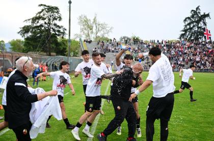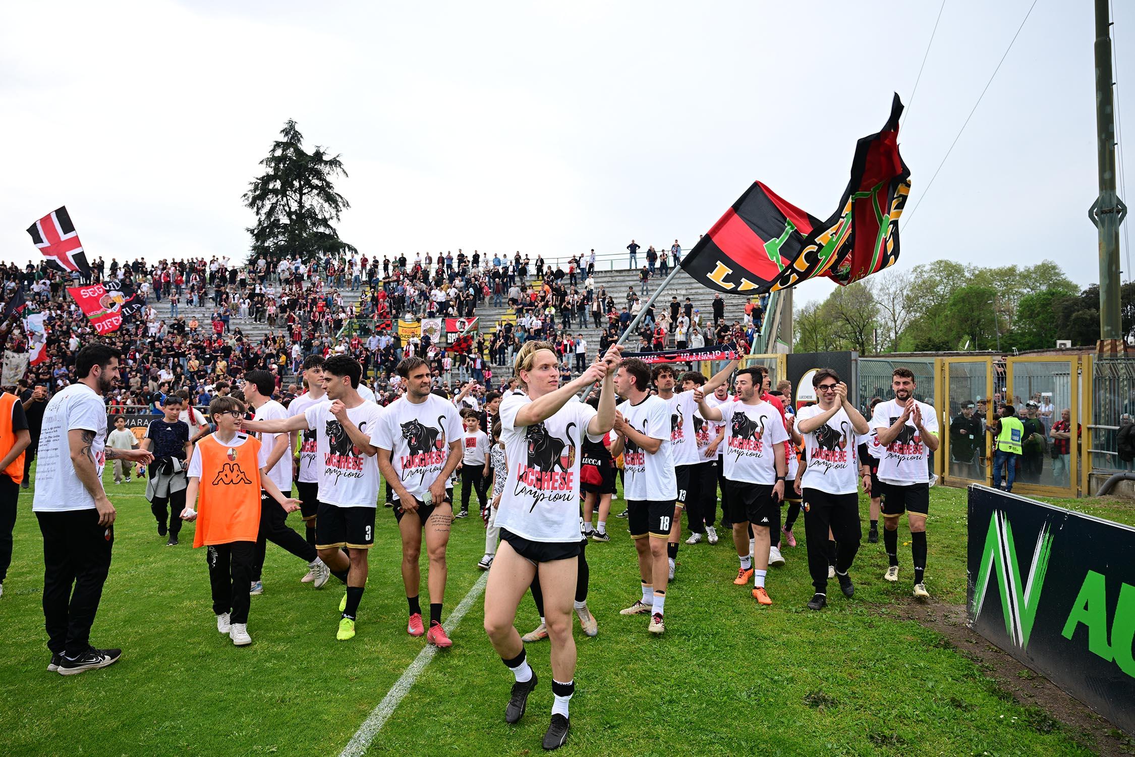 E' finalmente il giorno promozione. La Lucchese supera con pieno merito il Perignano e guadagna il matematico passaggio in Serie D. Una vittoria più che meritata visto il cammino dei ragazzi di mister Pirozzi che da ottobre in poi hanno tenuto un ritmo che nessun altro, molto più accreditato alla vigilia, è stato minimamente in grado di tenere. E' il primo fondamentale tassello dopo l'ennesimo e vergognoso fallimento della passata società. La Lucchese, rinata sotto gli auspici di Matteo Brunori arrivato alla guida grazie al bando indetto dal Comune nel luglio scorso, esce finalmente da una categoria che era totalmente inadeguata alla sua storia, al suo pubblico, alle ambizioni di una città. Se è stato possibile, è perché ogni componente ha remato nella stessa direzione, con la società (finalmente ambiziosa) in grado di allestire una squadra competitiva, un allenatore in grado di tenere sempre sul pezzo tutti i giocatori grazie alla sua bravura e umanità, un pubblico sempre vicino e mai polemico. E' un successo meritato e importante da molti punti di vista.