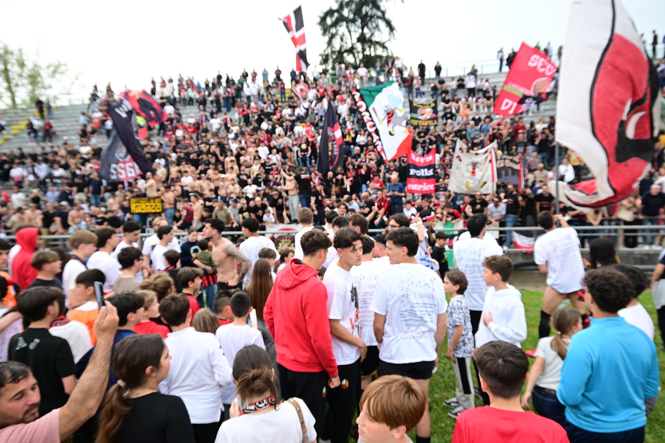 La ripresa inizia con i soliti 22 in campo, sugli spalti più forte di tutti è l'attesa della fine, del triplice fischio. In campo i rossoneri lasciano qualche metro in più agli ospiti. E Remedi costringe alla paratona Milan subito al 4'; sul contropiede innescatosi Camilli conclude fuori. I minuti passano, il risultato rimane in bilico, manca il colpo del ko. Regoli si autoinfligge un cartellino giallo (da ammonito) e saluta la compagnia: siamo all'11. La strada sembra ancor più in discesa, ma gli ospiti, complice un arretramento dei rossoneri che vanno ora a ritmi leggermente ridotti, non mollano. In panchina si scaldano un po' tutti. Al 19' Camilli parte ancora una volta in progressione ma spara sul portiere in uscita. Il sigillo lo mette invece Lorenzini, uno che in silenzio ha costituito uno dei perni della squadra: l'azione la imposta Fedato, cross sul secondo palo, Piazze, un ragazzo che fa della generosità la sua immagine, appoggia di testa (e non tira) a Lorenzini che da due passi fa centro. Per il Porta Elisa è il momento tanto atteso. E' la cristallizzazione della vittoria. Il resto è solo accademia e il giusto ingresso di Russo, Ragghianti, Palo e Tosi. Si può fare festa e iniziare a pensare al futuro. Rinati ancora una volta dalle cenere, come recita una striscione esposto in curva a fine gara. La categoria conta relativamente, l'emozione c'è tutta.