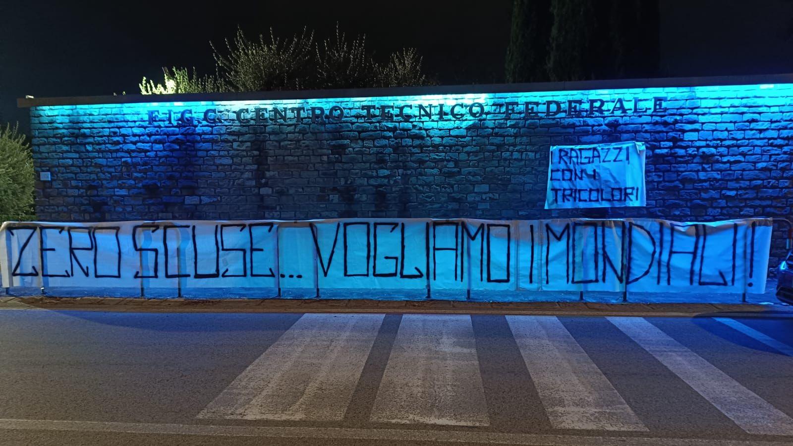 Cresce la protesta per i risultati della Nazionale e per la gestione in generale della Figc da parte dell'attuale dirigenza: nella notte al centro sportivo federale di Coverciano, a Firenze, è stato affisso uno striscione con su scritto: "Niente scuse...vogliamo i mondiali".