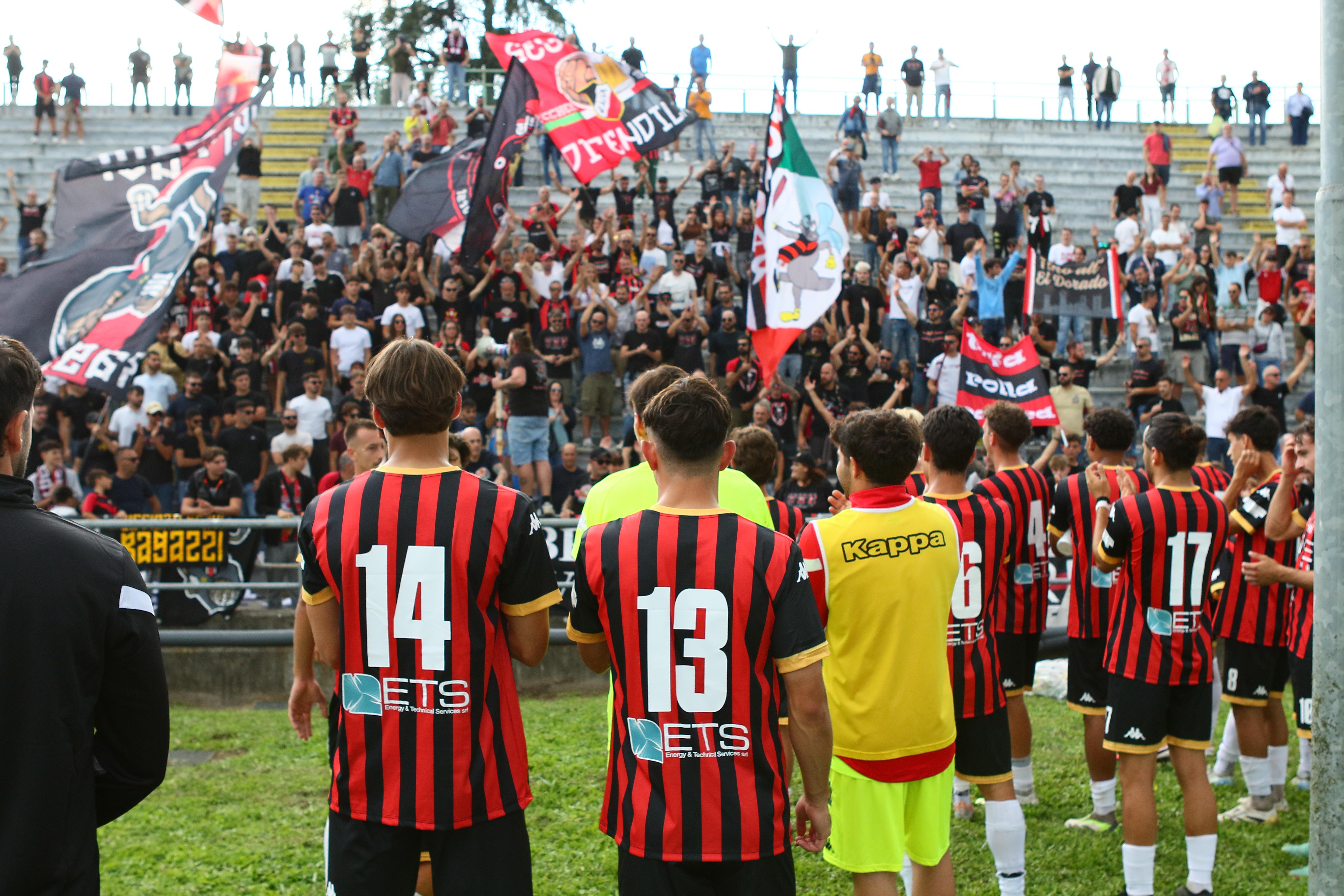 Rossoneri impegnati in Garfagnana e alla caccia di punti per conservare il primato in classifica: occasione per Nardi in avvio, poi Riad conclude fuori. Nella ripresa occasioni per Riad e Zenuni. Poi eurogol di Riad. Traversa di Bartolomei
