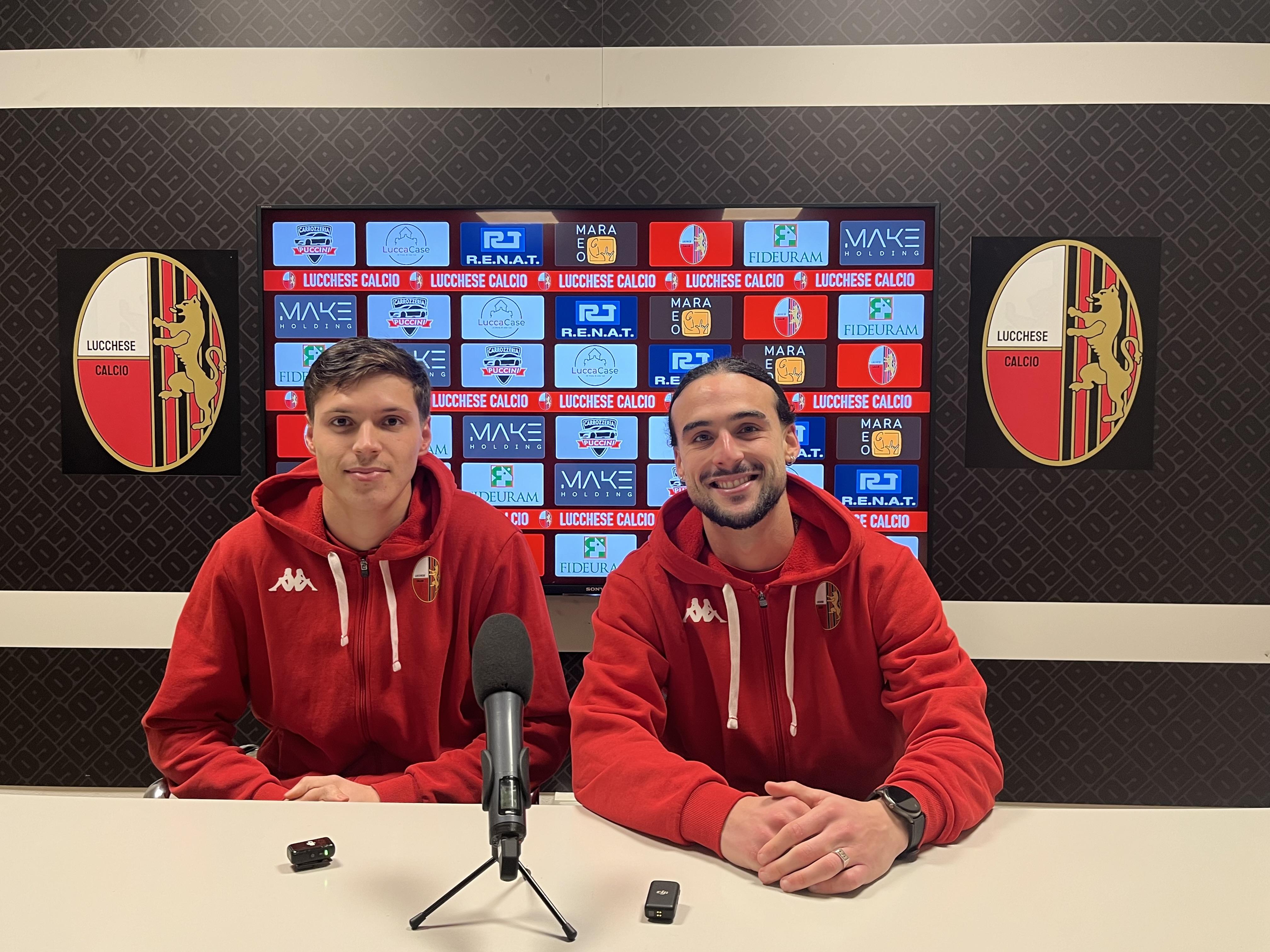 Alberto Milan e Facundo Piazze in sala stampa, il portiere che ha salvato il risultato quando il vantaggio era minimo grazie alla parata sul rigore concesso al San Giuliano, l'attaccante che ha virtualmente messo la parola fine con il raddoppio a inizio ripresa.