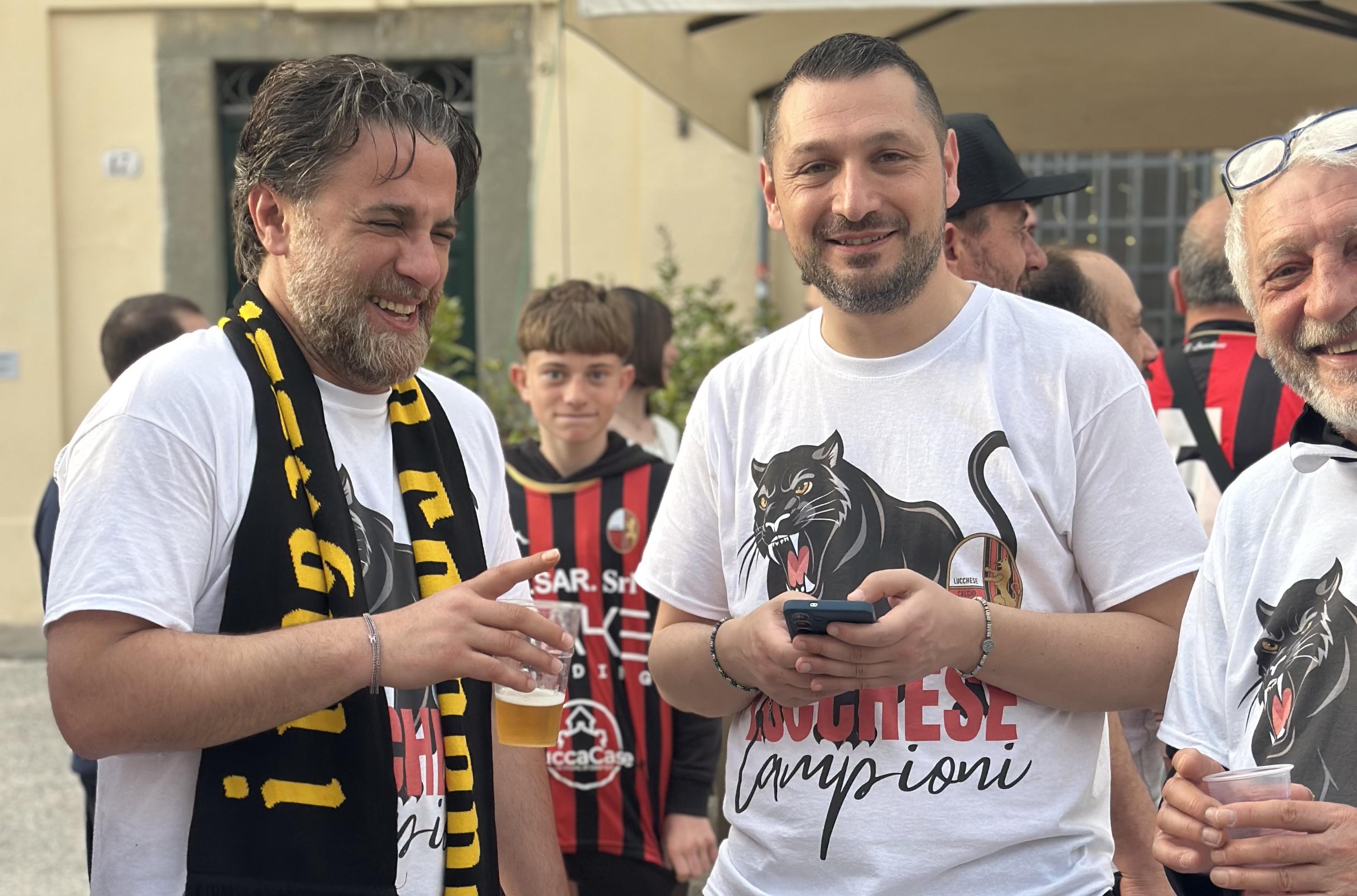 A fine gara, tutta la squadra invade la sala stampa, urlante, esultante, con indosso le magliette celebrative dove non mancano le frecciate a chi riteneva la Lucchese non idonea a lottare per la promozione: