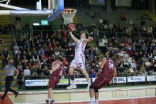 Al Palatagliate, i biancorossi si impongono sugli aretini: 74/68 il punteggio finale, una vittoria importantissima soprattutto alla luce delle vittorie di Costone, Mensana e Virtus Siena. Drocker scatenato realizza 25 punti